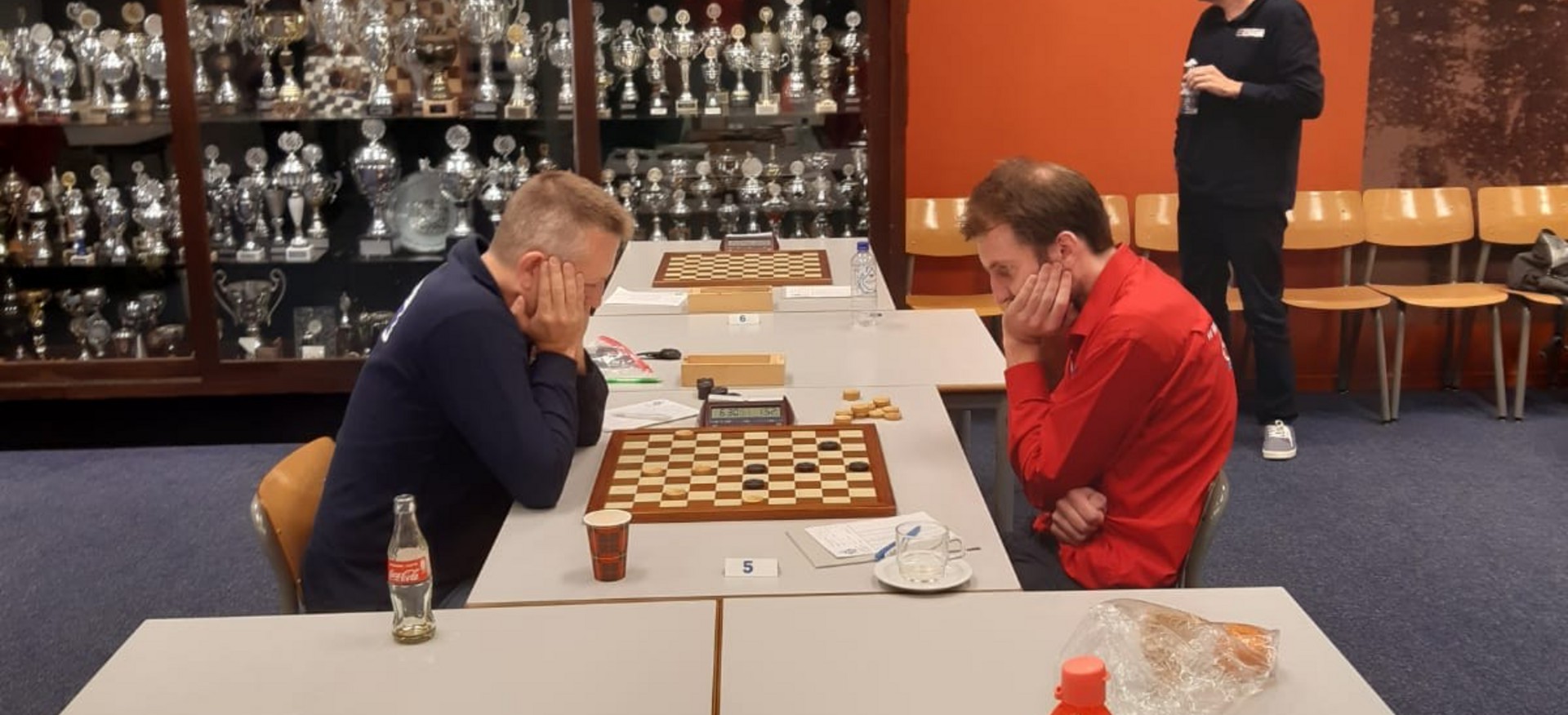 En hoe was het om, voor het eerst sinds maart, weer een ‘echte’ dampartij te spelen? Na een onwennig begin zonder het gebruikelijke handen schudden en koffie uit een wegwerpbekertje in plaats van een kopje, kwam na een tijdje het wedstrijdgevoel boven. Dat gevoel laat zich moeilijk met een pen beschrijven; voor mij betekent het dat ik een enorme wil krijg om te winnen, om mijn tegenstander in te maken. Ik wil mijn best doen voor de club en hoop vurig dat het team wint.
