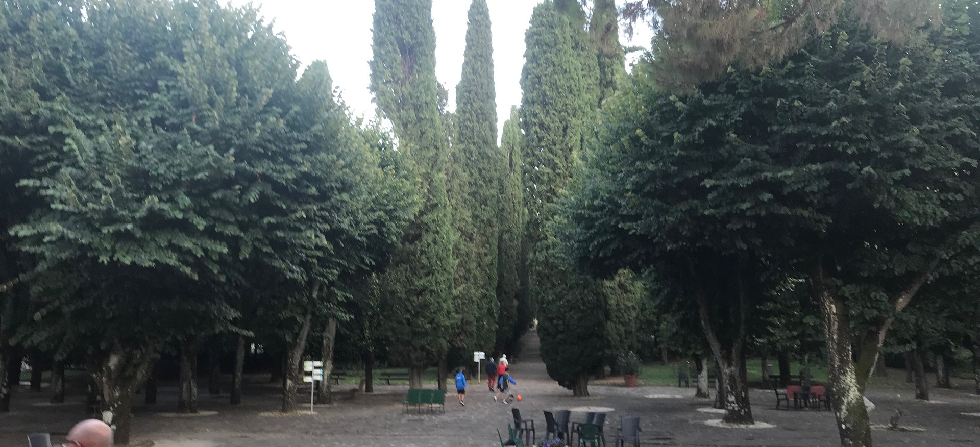 Überhaupt aankomen in Italië werd voor mij enigszins penibel, toen ik onderweg naar vliegveld Eindhoven in Zwolle pardoes in de trein naar Leeuwarden stapte. Bij het horen van ‘station Meppel’ besloot ik toch maar weer richting het zuiden te gaan. Vlucht uiteindelijk gehaald, die bleek ook vertraagd te zijn (piloot zat in dezelfde trein naar Leeuwarden). Vanaf vliegveld was het vervolgens nog een bus, een sneltrein en een boemeltje om vervolgens rond elf uur ’s avonds op het treinstation van Chianciano Terme aan te komen en mee te gaan met…, met wie eigenlijk? Een ijsje, een cappuccino en anderhalf uur verder kwam onze transfer om ons na een nachtelijke achtbaanrit door de Toscaanse heuvels veilig en wel af te zetten bij het hotel…